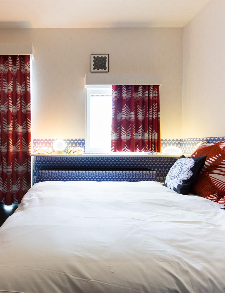 Room 5 Perfume Vlisco room by Piet Paris and Klaas Kuiken <p>This room is inspired by the iconic perfume Chanel No. 5 with curtains made of fabrics designed by Vlisco and wallpaper in the same design. Vlisco is renowned for its colorful fashion fabrics and is world famous, especially in African countries.</p> <p>The Comfort Room has a double bed of 1.60 x 2.00 meters.</p> <p>Click on &#39;Book a comfort room&#39; to see the availability of our Comfort Rooms. If you would like to specifically reserve the room by Piet Paris and Klaas Kuiken,&nbsp;<a href="mailto:receptie@hotelmodez.nl">email</a> or <a href="http://tel:+31026440993">call</a> our reception.</p>