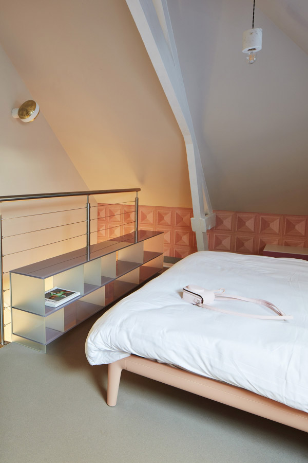 <p>Als createur heeft Irving Vorster de kamer het ultieme modegevoel gegeven door het Pied de Poule motief als uitgangspunt te nemen. Dit komt op een verrassende manier terug in de kleurvlakken op de muur en in de toegevoegde wandspotjes. Qua sfeer verwijst het naar zijn couture salon, met een knipoog naar het atelier.</p>